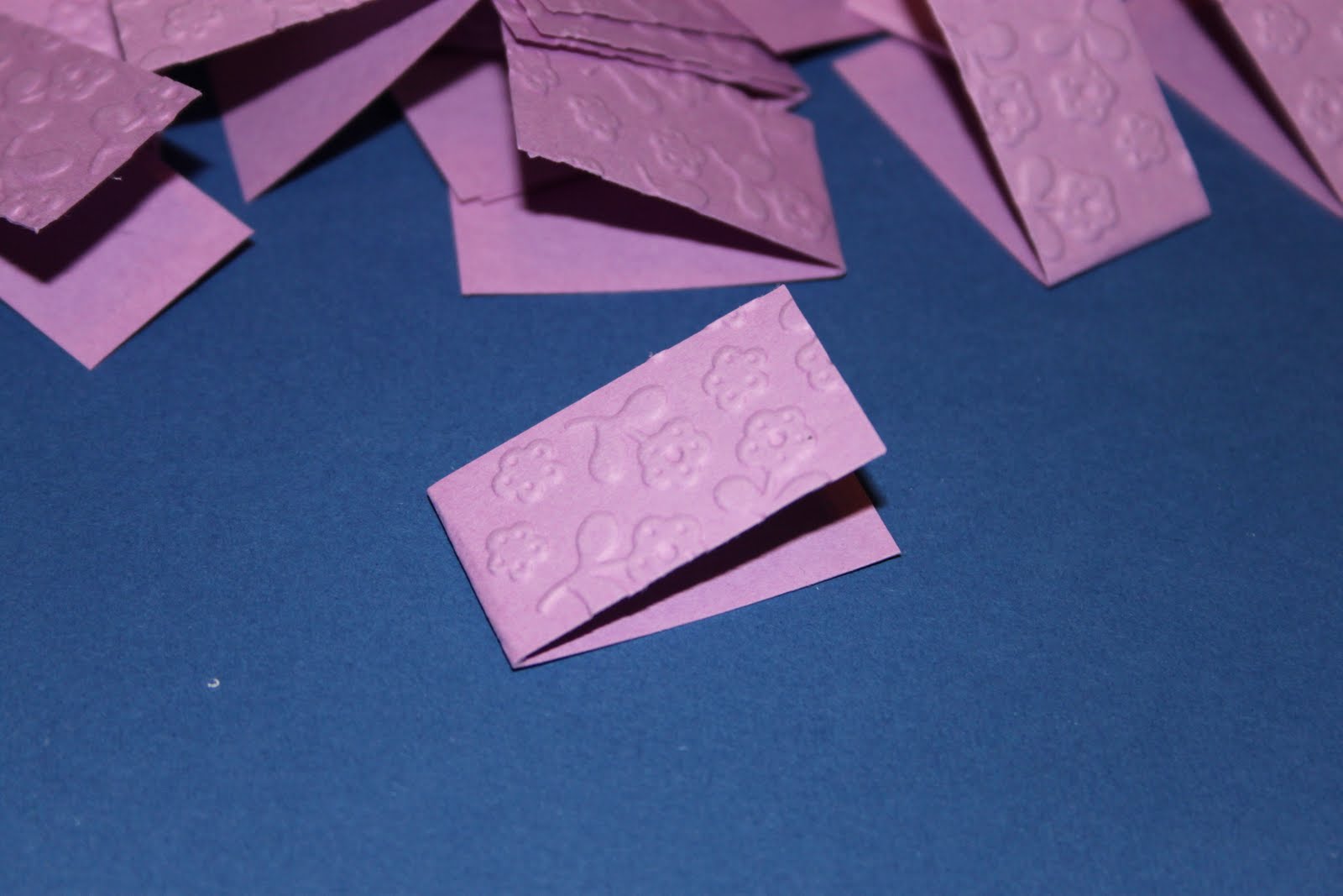 Stavolta niente timbri ma tanto embossing per i bigliettini in lilla per le bomboniere del battesimo della piccola Rebecca!!!