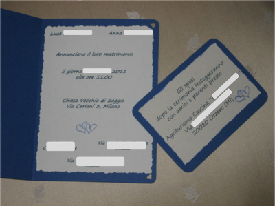 La sposa ci ha fatto penare parecchio per la scelta....ma una volta deciso siamo partite in quarta (bhe....più o meno....) per le 100 partecipazioni!!!!!