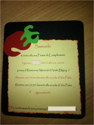Se Samuele vuole festeggiare il suo compleanno al Mexicali...bisogna creare un invito ad hoc per questa occasione!!!!!