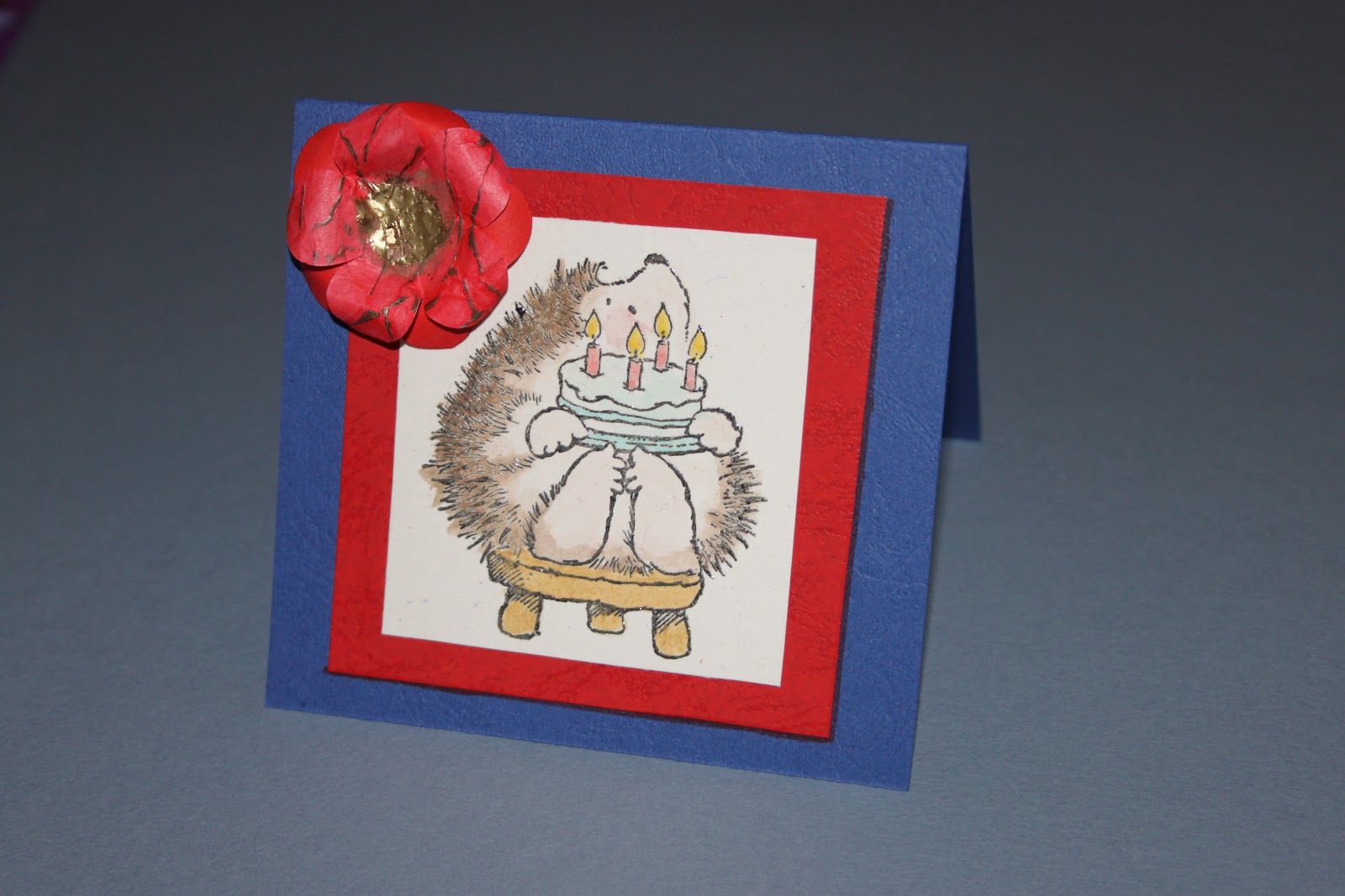 ho fatto un fiore (ritagliato a mano da due diversi tipi di carta) e ho decorato il centro con la polvere da embossing oro che poi ho scaldato!!!
