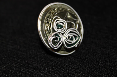 Anello con rose ricavate dai bordi inferiori delle capsule verde scuro...