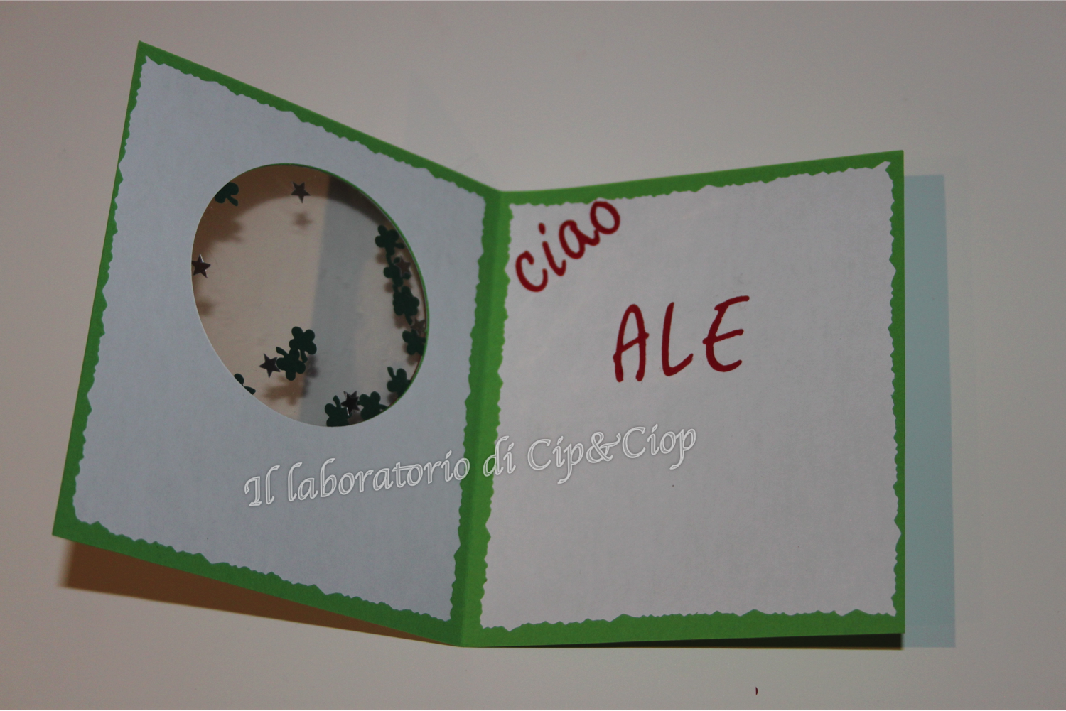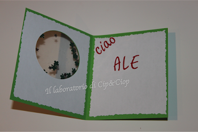 Per salutare un collega e augurargli "Buona fortuna" ci vogliono dei quadrifogli!!tanti quadrifogli....magari in una shaker card: