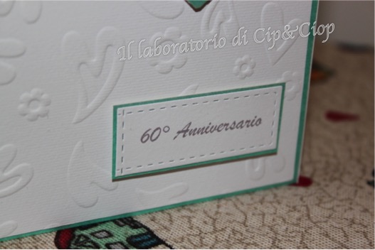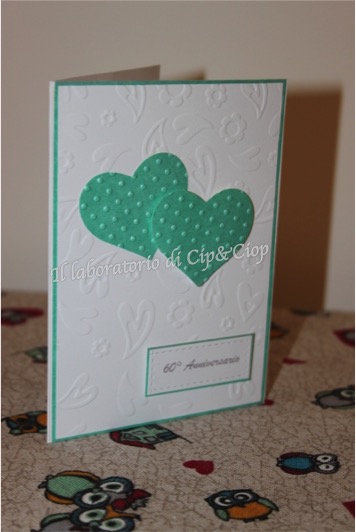 Ecco una card elegante ....color tiffany con particolari in rilievo: auguri per i vostri 60 anni di matrimonio!!!!