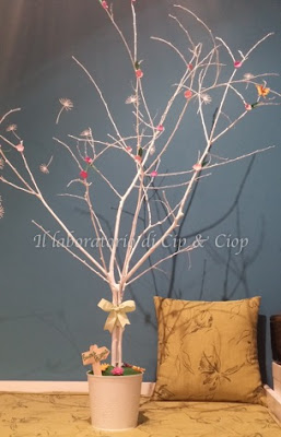 Rami recuperati dalla potatura di alcuni alberi, verniciati di bianco e inseriti in un bel vaso bianco di latta.....