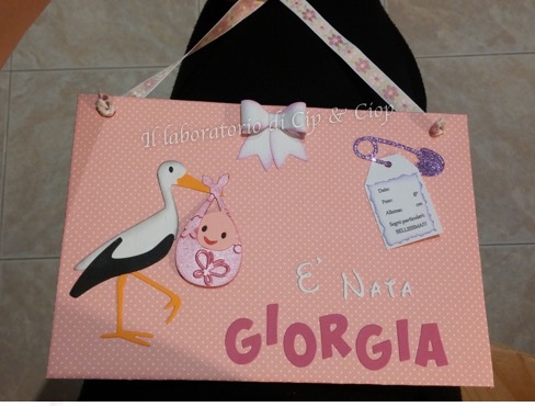 La piccola Giorgia ci ha colti impreparati con la sua nascita in anticipo....ma in quattro e quattr'otto ha avuto la sua targa nascita! Qui sono raccolte tutte le sue informazioni: peso, misure e segni particolari!!!