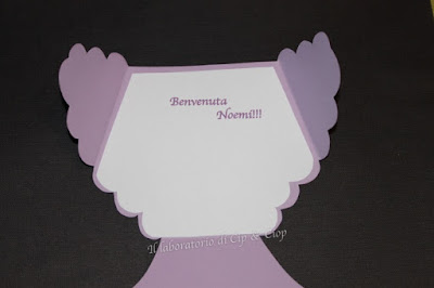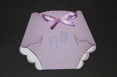 Per accompagnare una torta di pannolini non poteva mancare una card originale a Forma di.....pannolino!!!! Eccola qui: