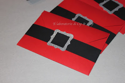Natale si avvicina....cartoncino rosso e una cintura per mimare l'abito di Babbo Natale per questa card porta foto per augurare ad amici e parenti Buone feste: